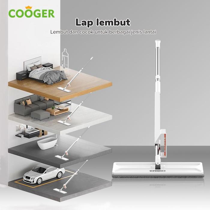 Cooger Alat Pel Lantai Ultra, Jumbo, Jumbo 45 Cm White Peras Otomatis Standing Pel Lantai Bisa Berputar 180 Derajat Kain
