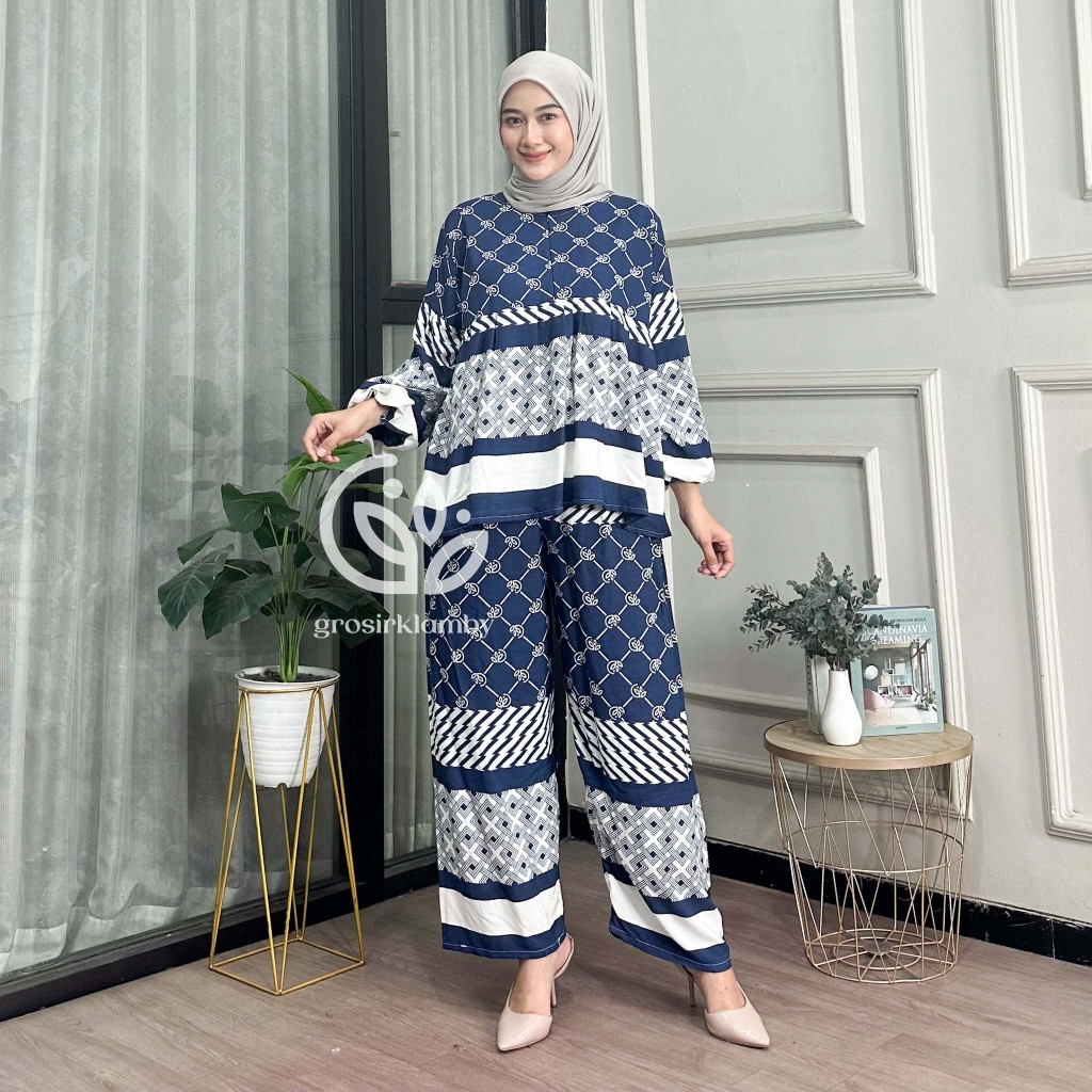 One Set Amala Couple Ibu Anak Rayon Batik Premium Rempel Busui Setelan Atasan Bawahan Wanita Celana Kulot Panjang Adem Nyaman Tebal