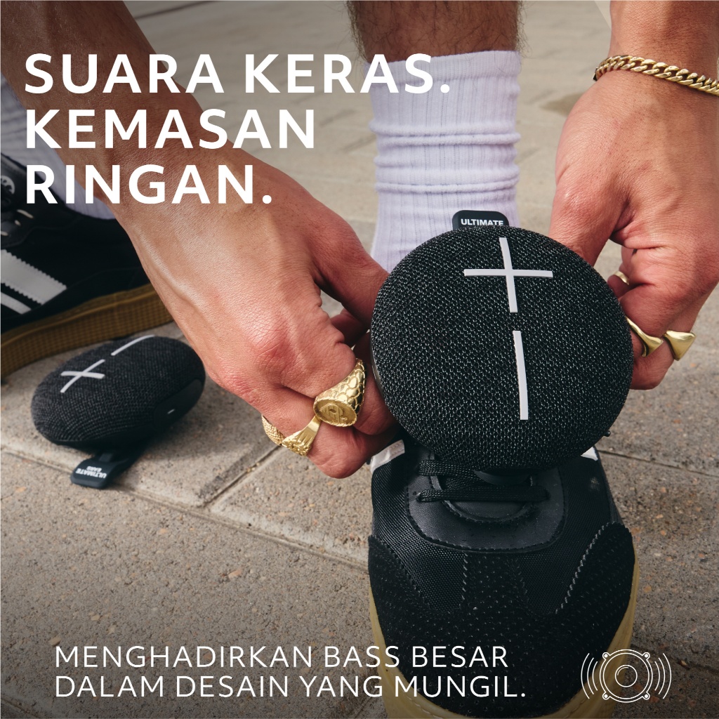 Logitech Speaker Bluetooth Tahan Air Ultra Portabel ULTIMATE EARS MINIROLL, Big Bass, Tahan Debu IP67, Jangkauan 131 kaki (40 m)