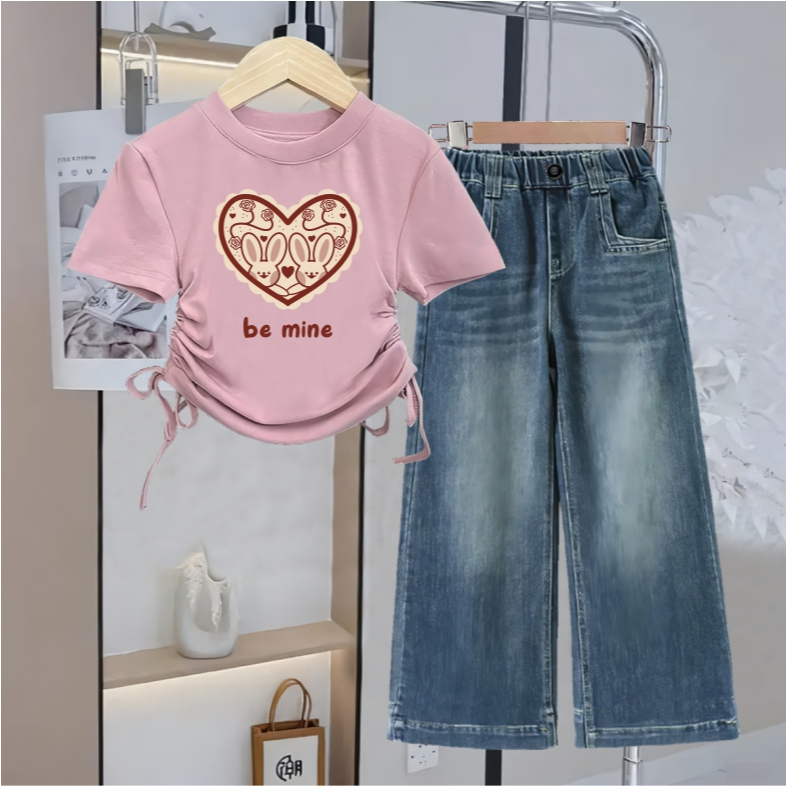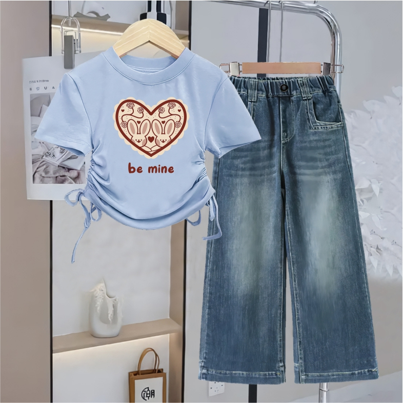 Baju Setelan Anak Perempuan Model Serut Celana Kulot Jeans usai 1 - 12 tahun