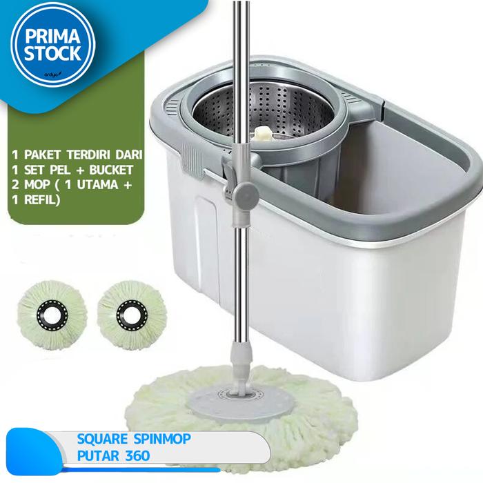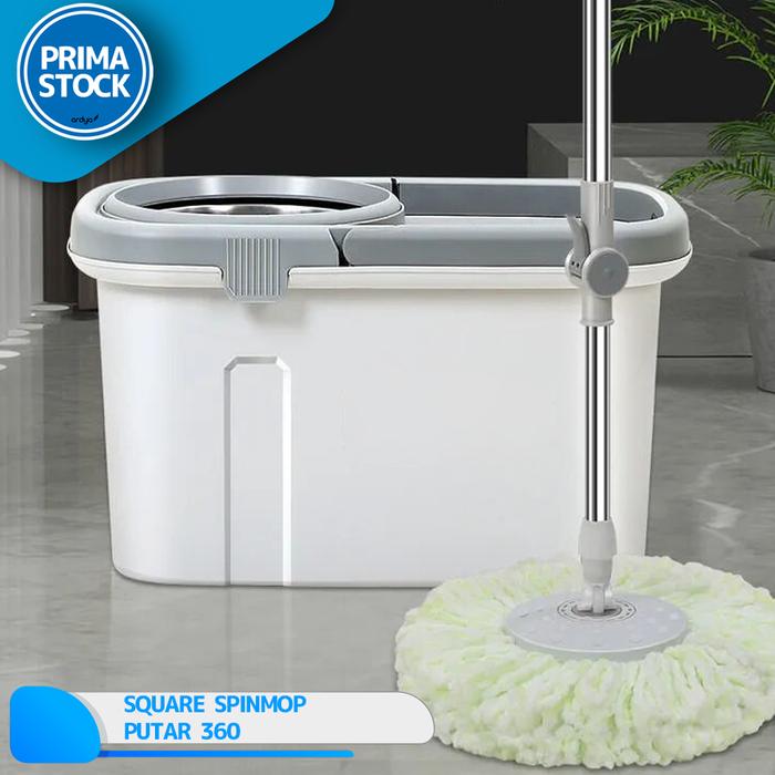 Spinmop Square Spin Mop Kotak Alat Pel Putar Stainless Ember Putih