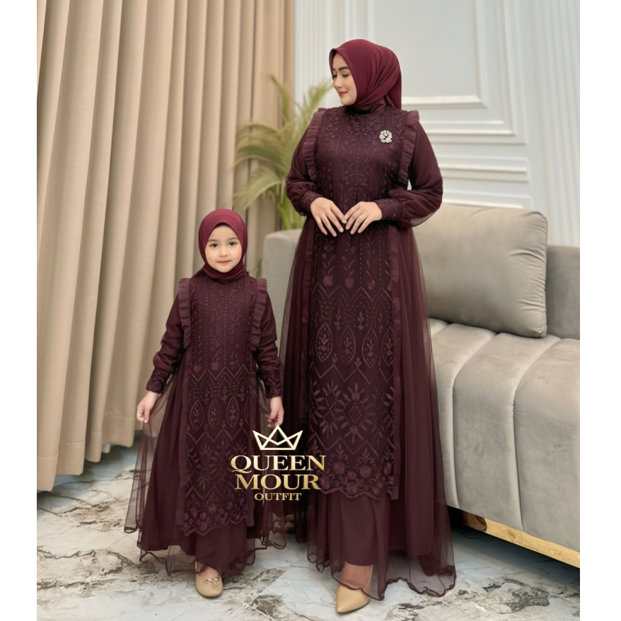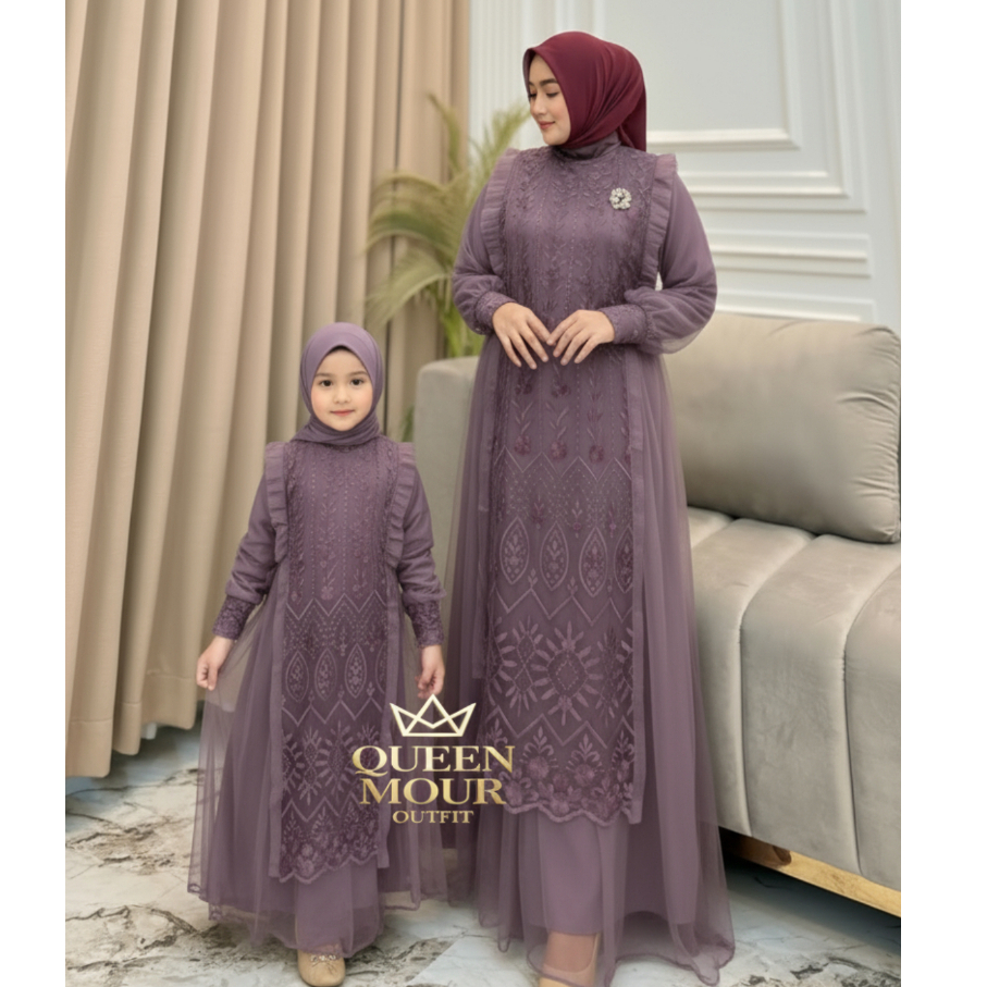 Queen Mour Outfit - sarimbit keluarga 2026 lebaran premium Nikita gamis couple ibu anak Tille Premiu