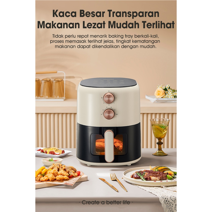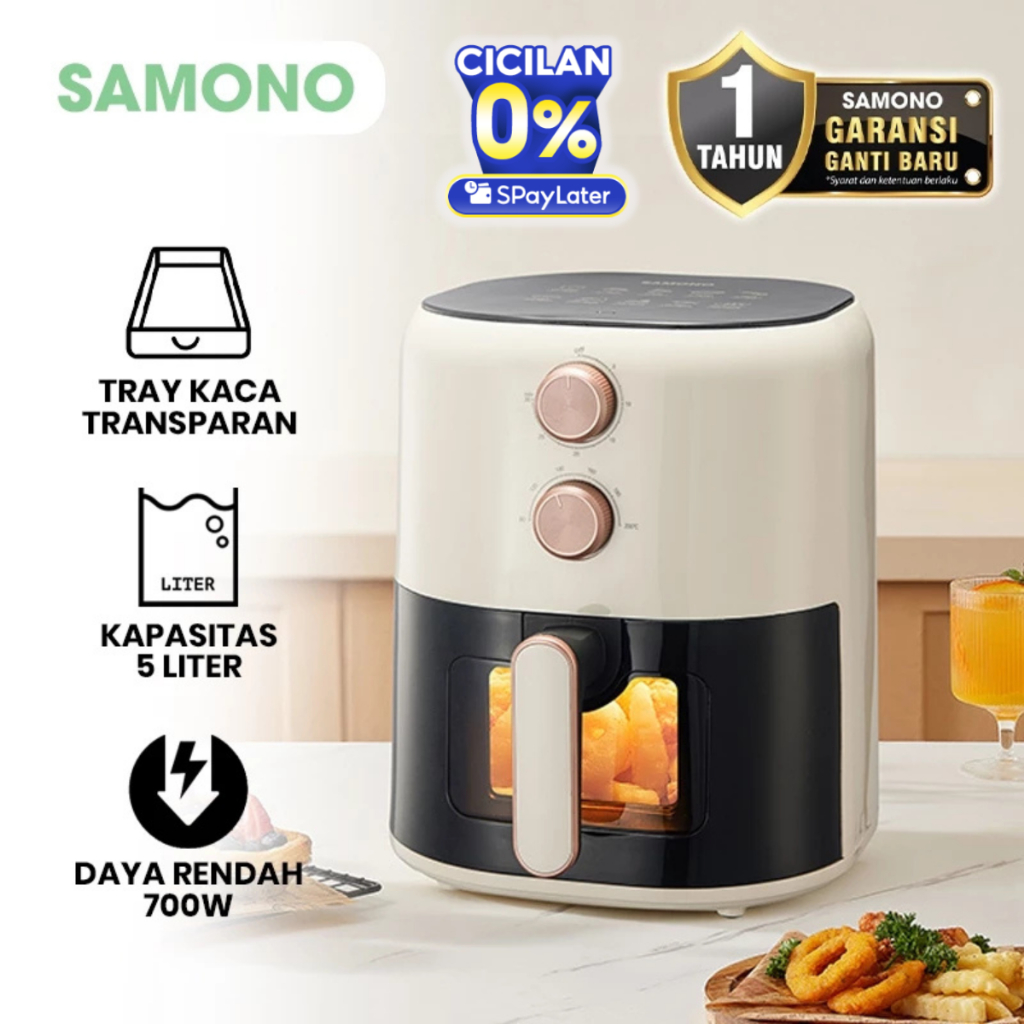 SAMONO Aesthetic Transparan Air Fryer 5L 700W Low Watt SNI Hemat Listrik Mesin Penggoreng Tanpa Minyak SW-AFW50