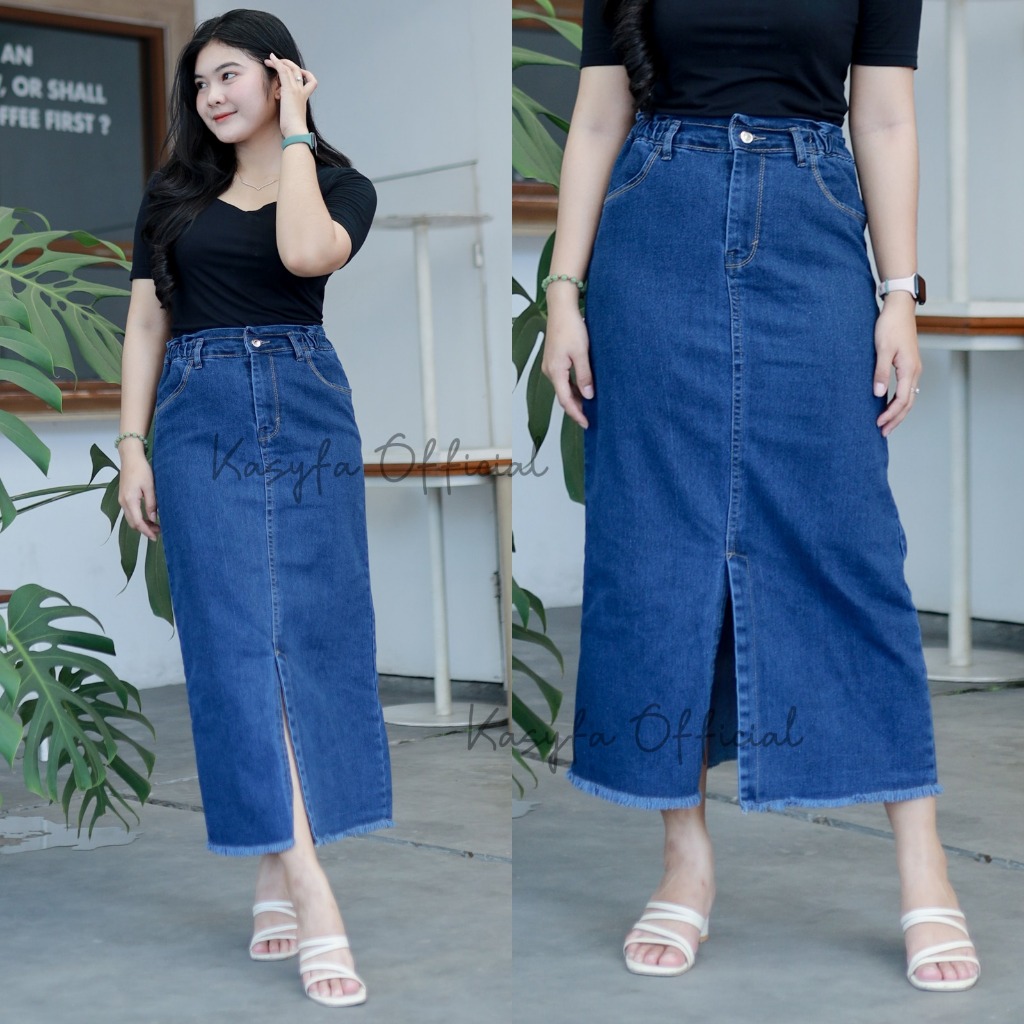 Story Rok Jeans 7/9 Wanita // Coral Skirt Jeans Belah Depan