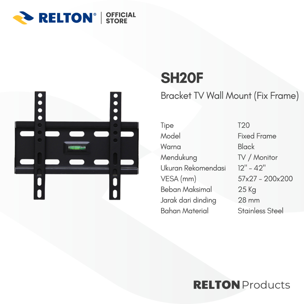Bracket TV LED QLED LCD Monitor 14" - 42" Fix Frame Wall Mount SH20F Braket TV Waterpass