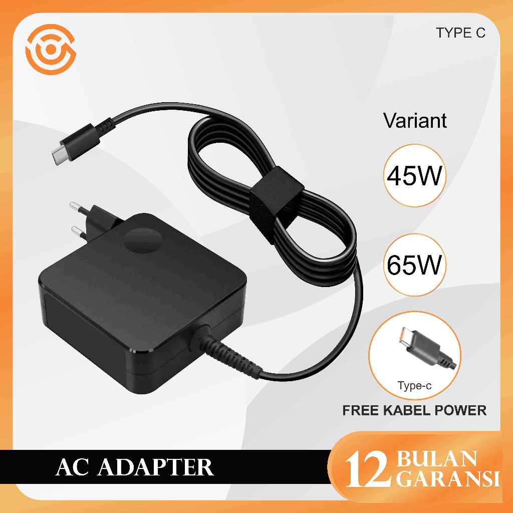 VOC Adaptor Charger Laptop ThinkPad IdeaPad Yoga Slim 2 Tipe Pin (Konektor USB Kuning / TYPE C) 20V 45W/65W/90W FREE Kabel Power