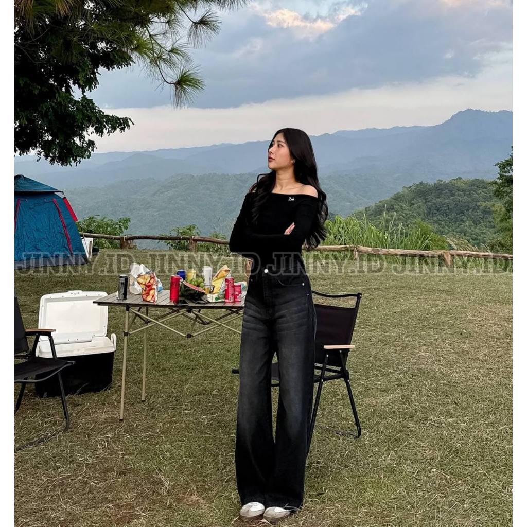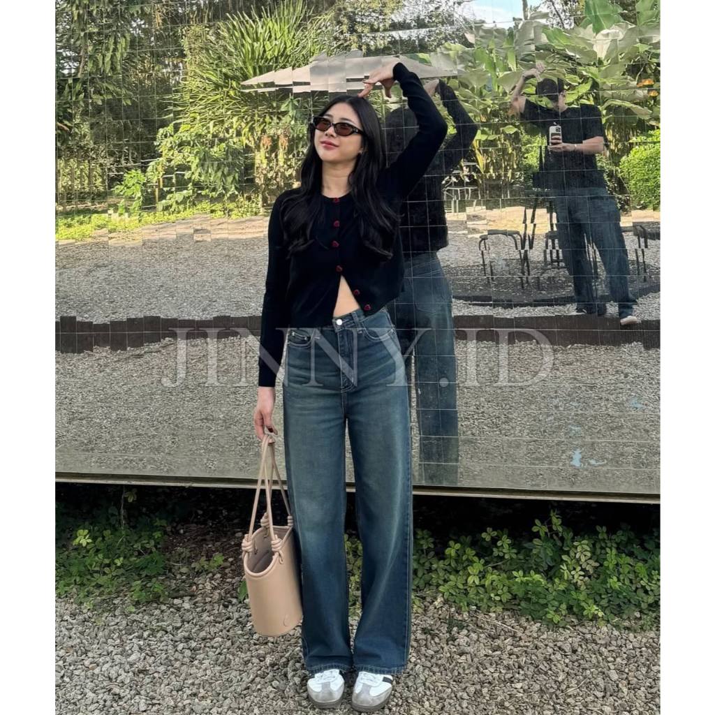 Highwaist Loose Adjustable Baggy Under Age voll 2 Celana Jeans Wanita kekinian
