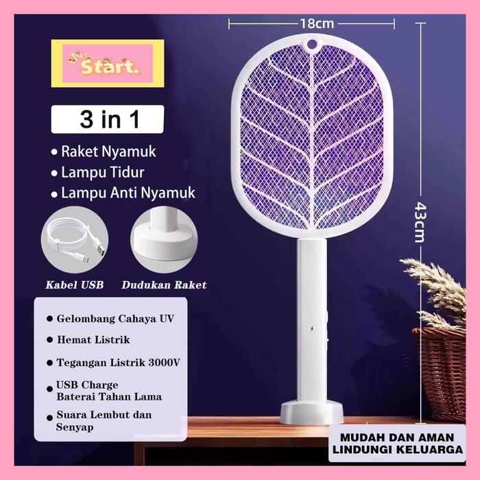 Start Point Raket Nyamuk 3 In 1 Elektrik Charger Usb / Pembunuh Nyamuk Listrik / Mosquito Killer Recharge Bisa Standing