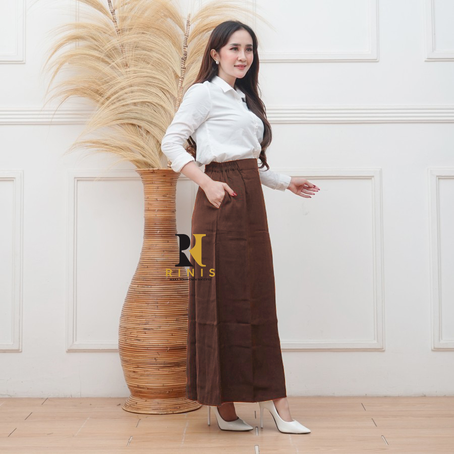 RINIS - Rok Kerja A - Line Kain Ferrari Tebal Adem Size S - L14 Premium Quality