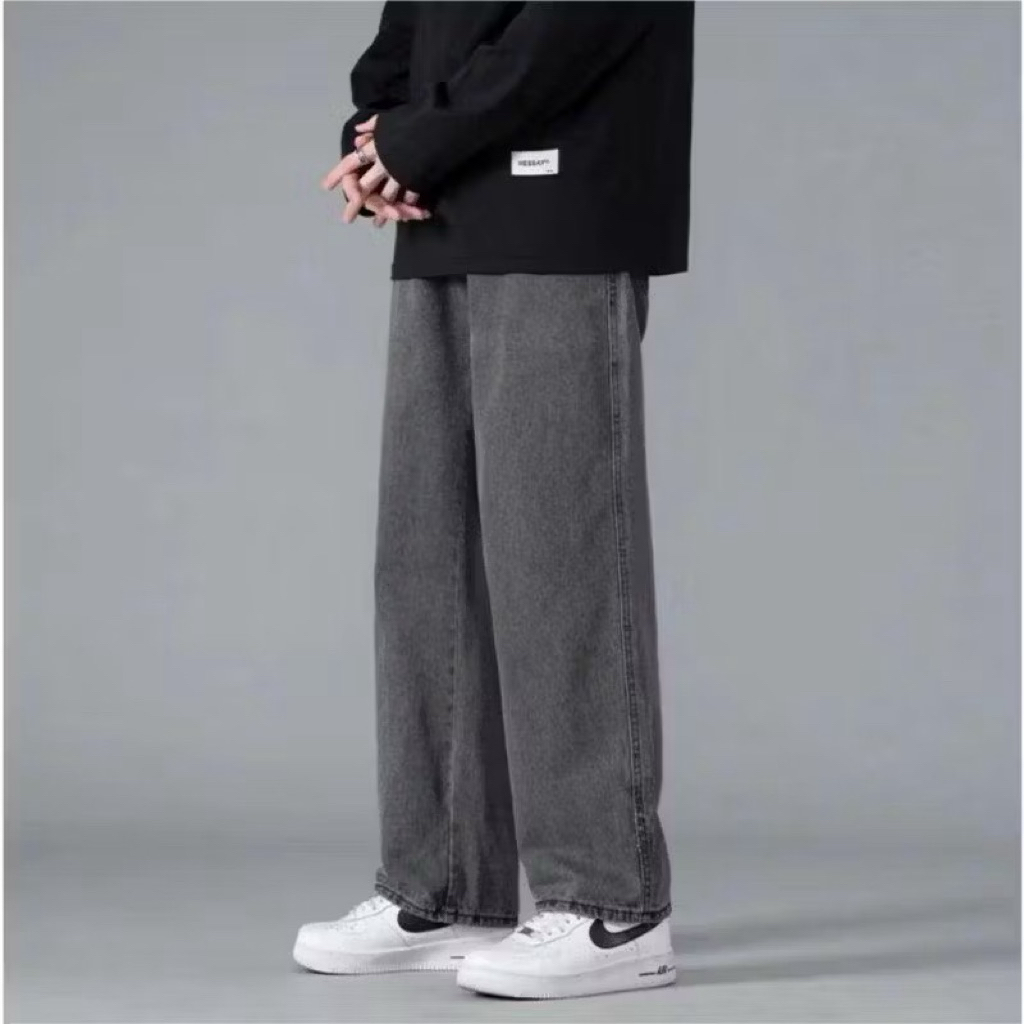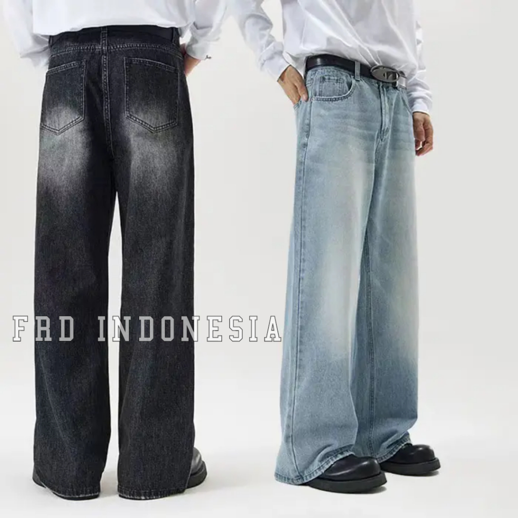 Celana Baggy Jeans Pria Wisker Wide Leg Korean Style Highwaist Gombrong Skena Kuloat Jeans Pria Bahan Denim Highwaits
