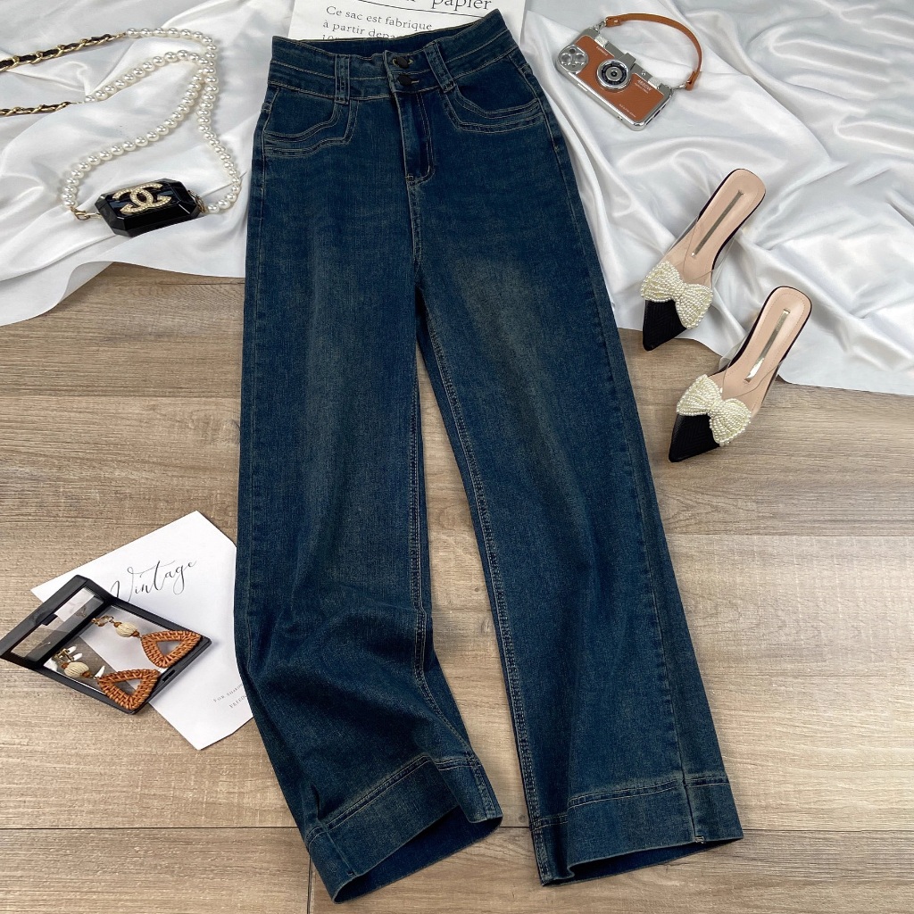 Bigsize Celana panjang wanita kekinian Jeans Retro high waist korean style highwaist kulot fashion wanita loose pants