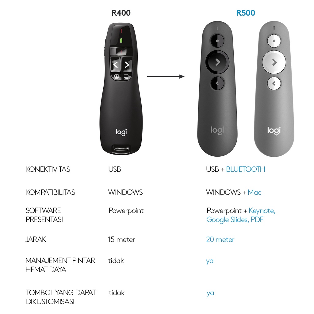 Logitech R400 Remote Pointer Presenter Wireless Laser Merah