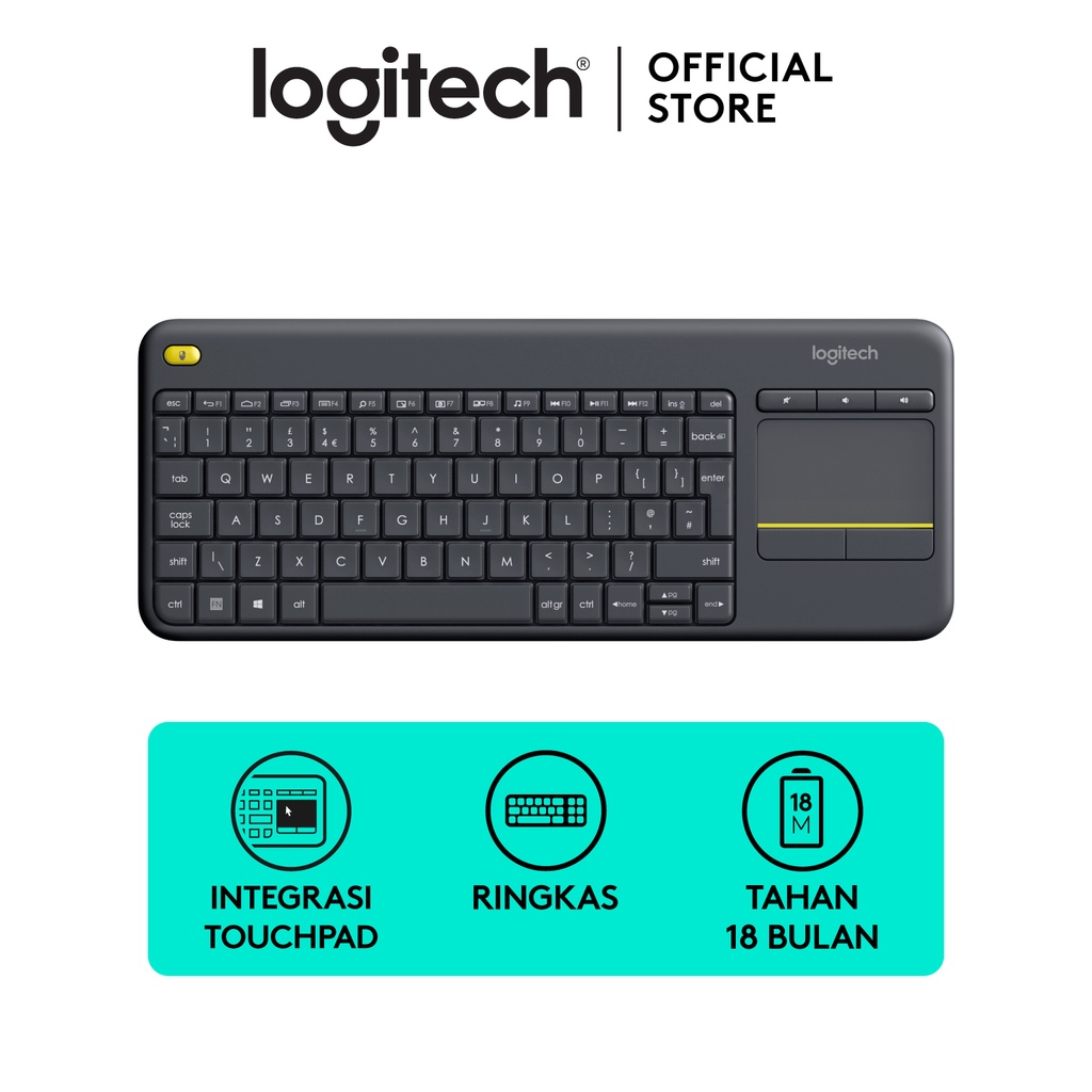 Logitech K400 Plus Keyboard Wireless dengan Touchpad untuk PC & SmartTV - Black