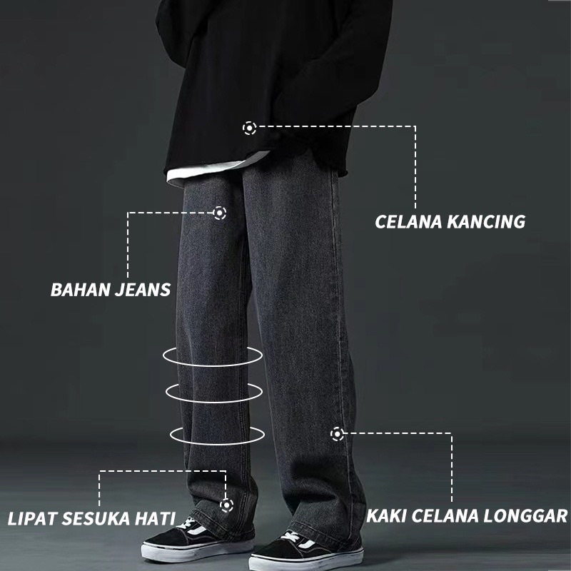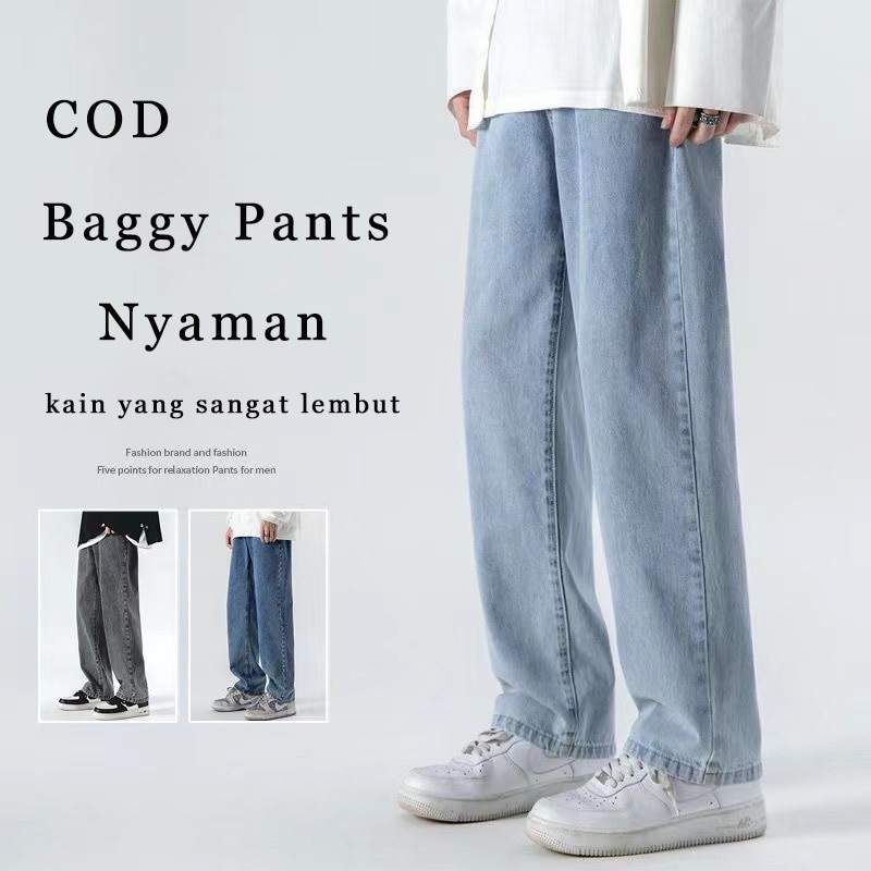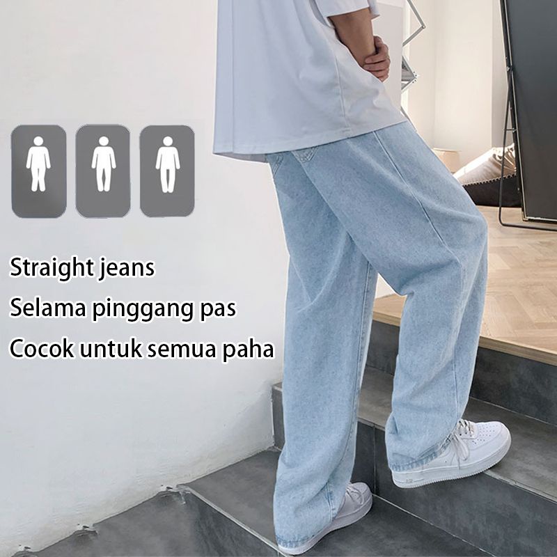 ROMINSY - Celana Panjang Jeans Pria Blue Jeans Korean Style Original Loose Straight