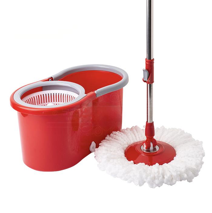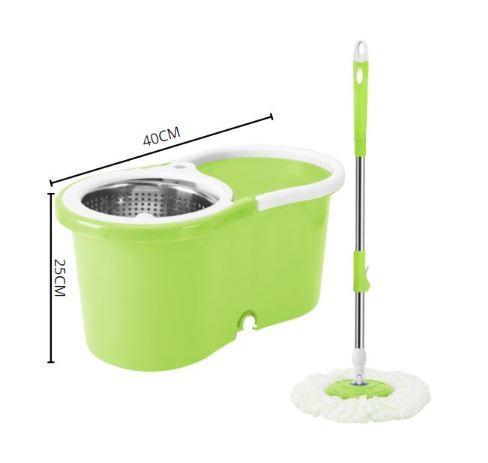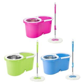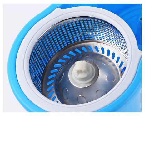 Set Alat Pel Lantai Stainless Super Mop Dengan Ember Pencuci Putar | Hand Preassure Rotary Mop 360 Pembersih - Biru