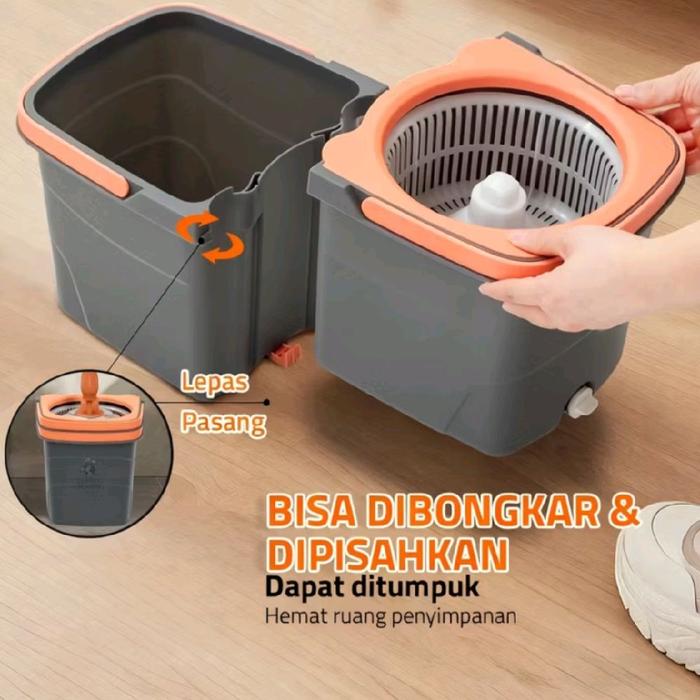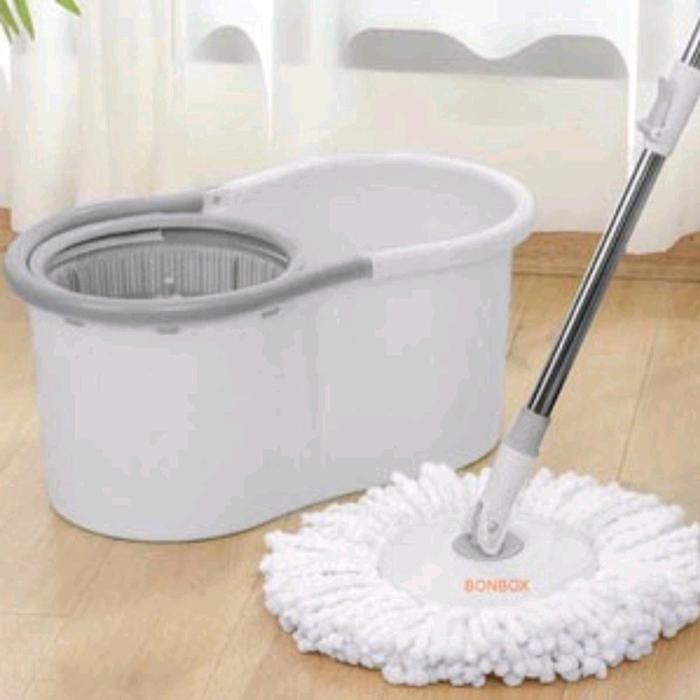 Satu Set Alat Pel Mop / Super Mop / Spin Mop / Pel Lantai Dengan Ember - White New Model