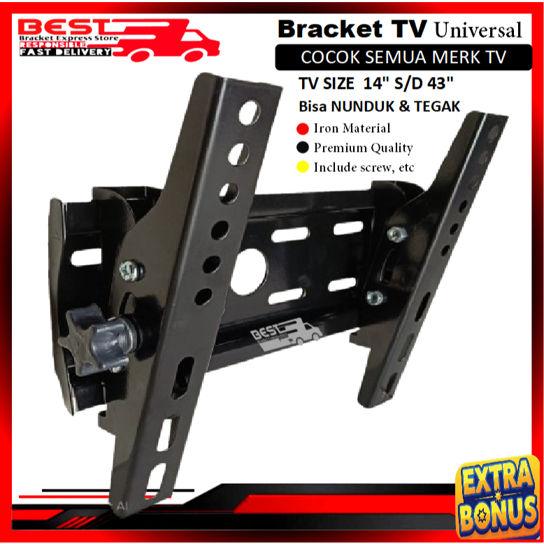 Bracket TV LED LCD 14" s/d 43" Universal 43 40 32 24 21 17 14 inchi nunduk FULL BESI bracket braket breket briket breaket brecket bricket