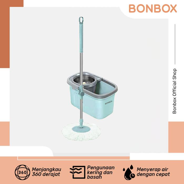 Bonbox Alat Pel Lantai Ember 2 In 1 Free Kain Pel Cadangan Kain Fiber Dengan Ember Spin Mop Mencuci Dan Membilas Alat Pe