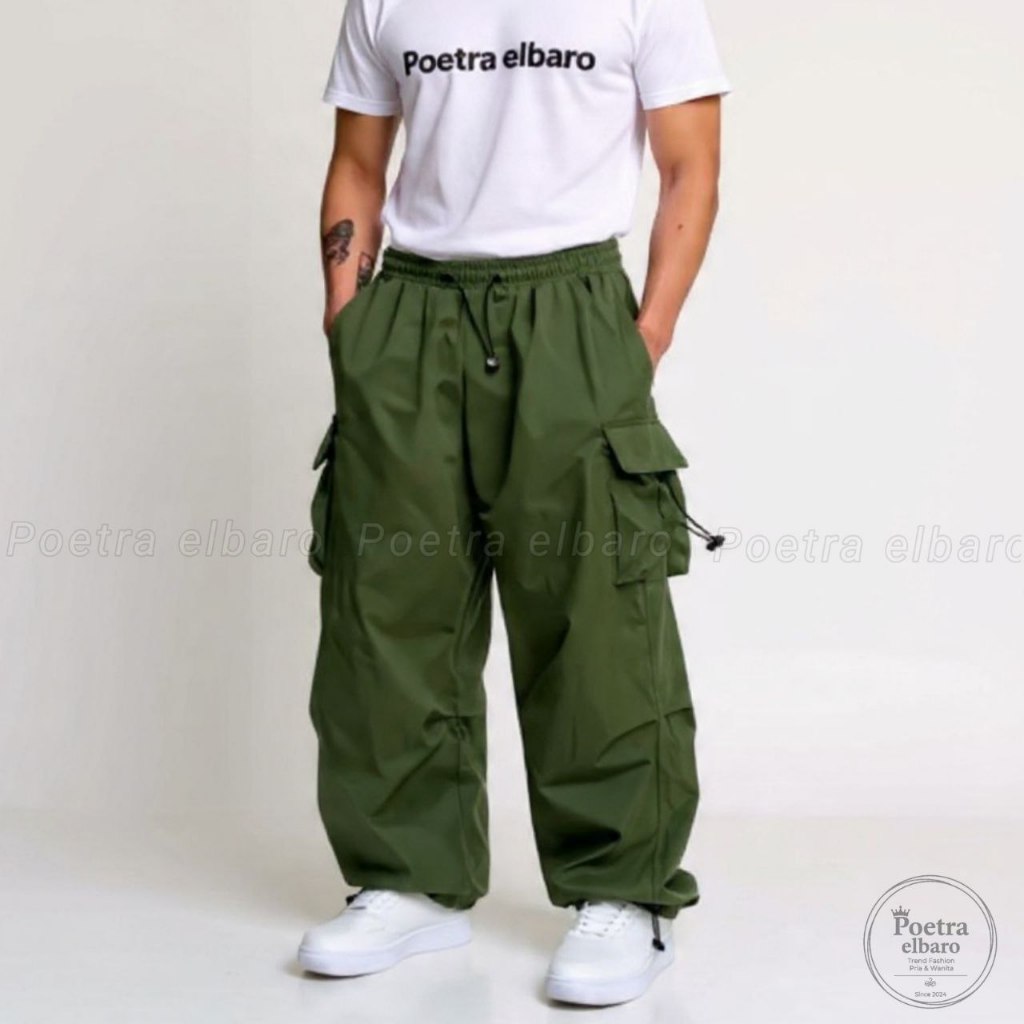 CELANA SKENA GOMBRONG CARGO JOGGER PRIA KOREAN STYLE - CELANA GOMBRONG PINGGANG KARET TERBARU