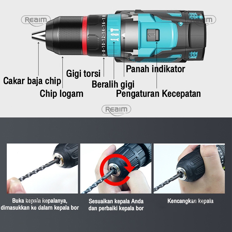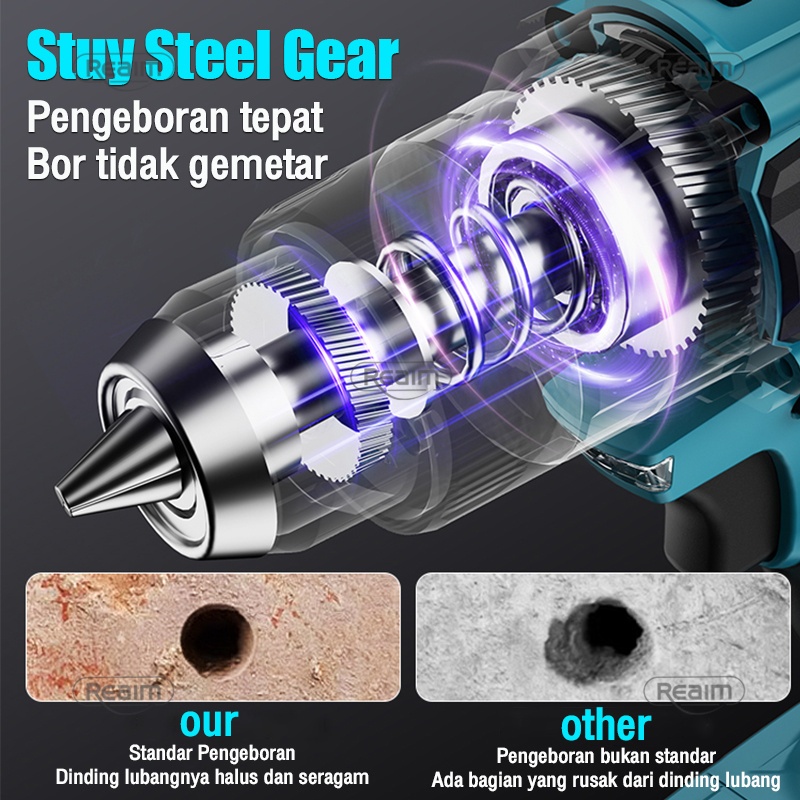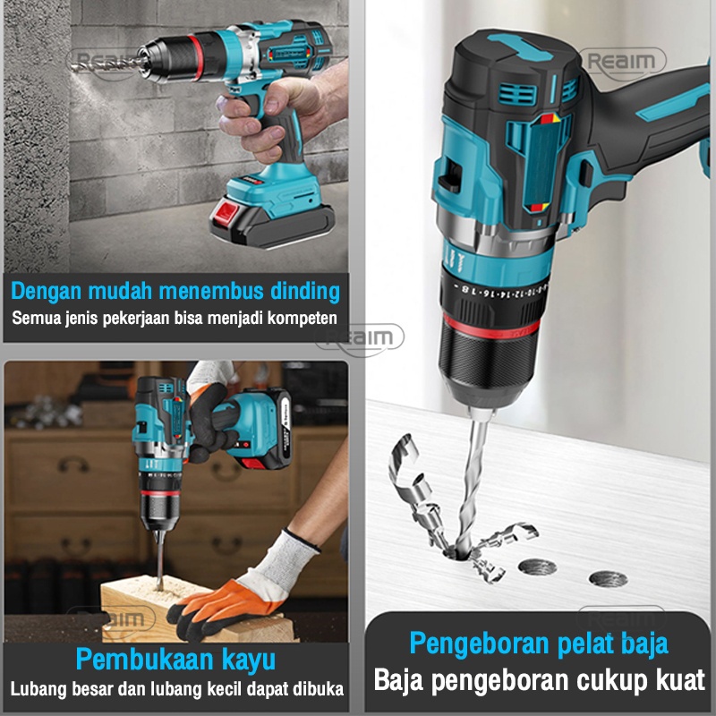 REAIM Mesin Bor Baterai 688Vf Brushless Impact Drill Bor Baterai Bor Tanpa Kabel Bor Listrik