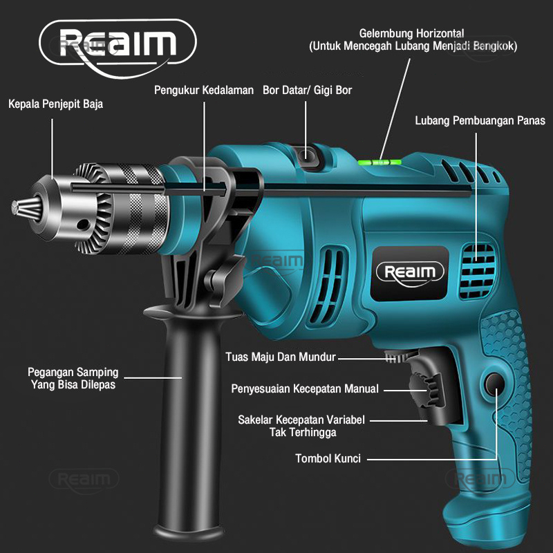 Reaim Mesin Bor Listrik 2 Arah Bolak Balik 13MM Impact Drill Listrik Tipe 10-3 / Electric Drill Reversable 700 W Bor bet