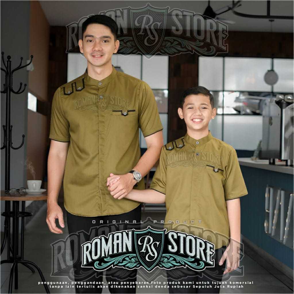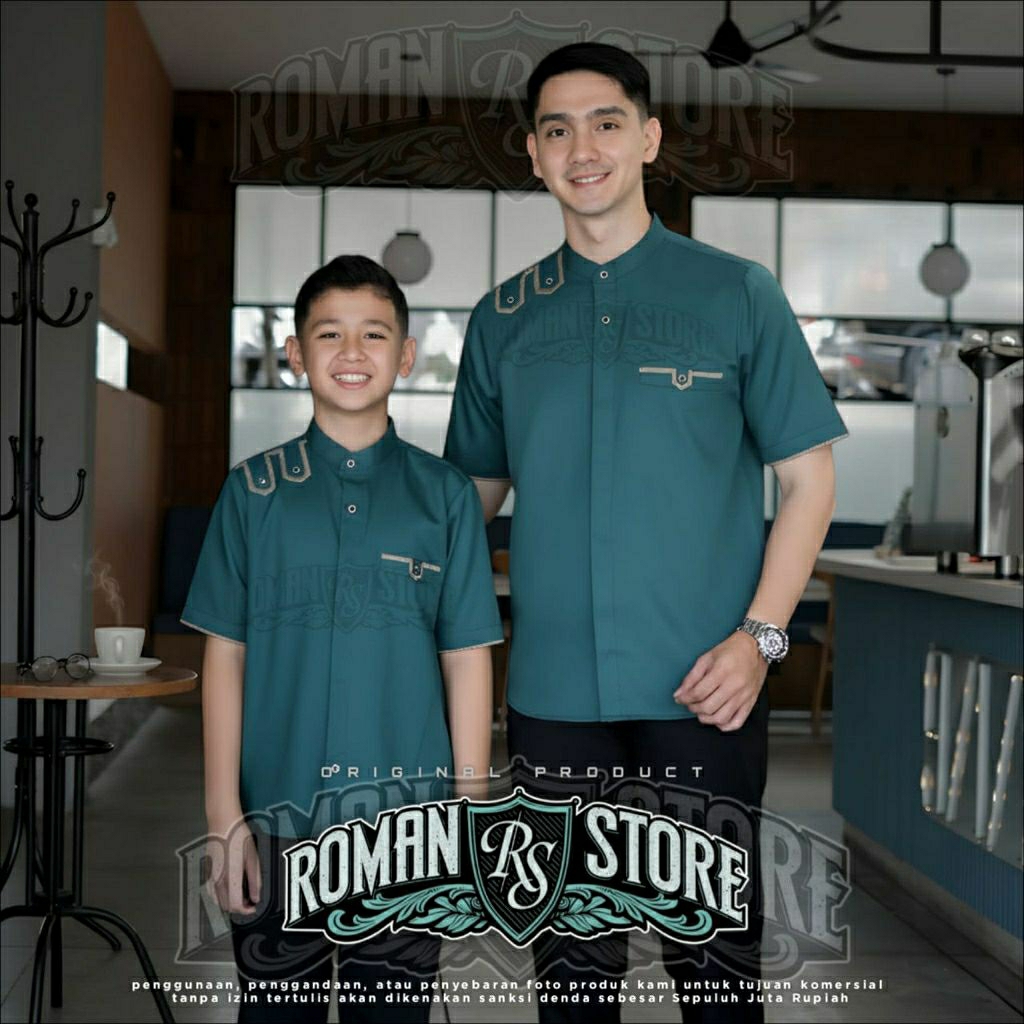 Baju Koko Couple Ayah Anak Laki Laki Bahan Toyobo Import Terbaru 2026 WARNA EMERALD / MAHOGANY