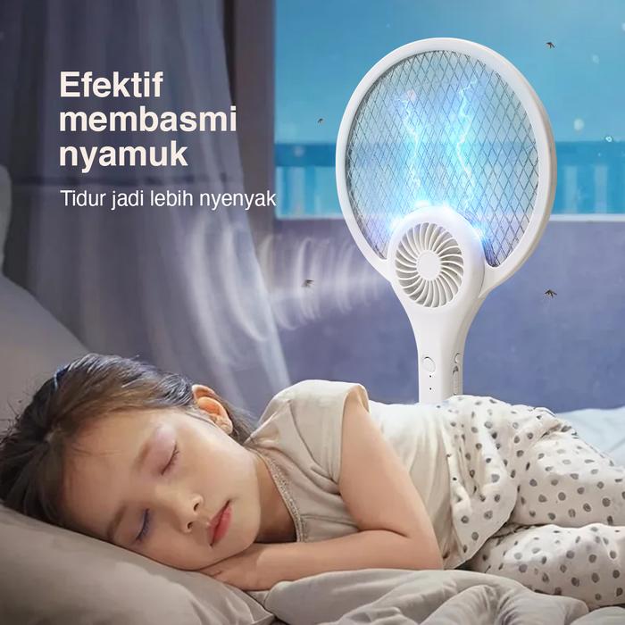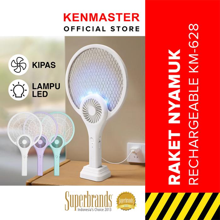 Kenmaster New Model Raket Nyamuk Baterai Recharge + Kipas Angin Km-628 / Raket Serangga Charge / Raket Pembasmi Serangga