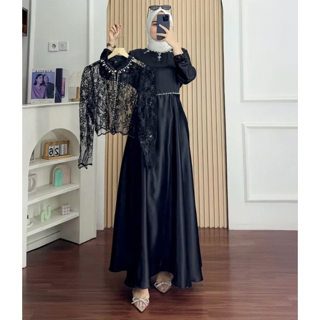 (S-XXL) Sakura Dress Silk Premium Set Outher Brukat Variasi Payet Gamis Kondangan Terbaru Kekinian