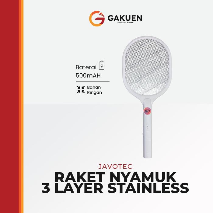 Javotec Raket Nyamuk Listrik 3 Layer Stainless – Baterai Rechargeable 500Mah, Efektif Membunuh Nyamuk & Serangga, Ringan