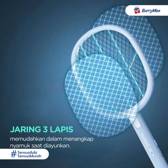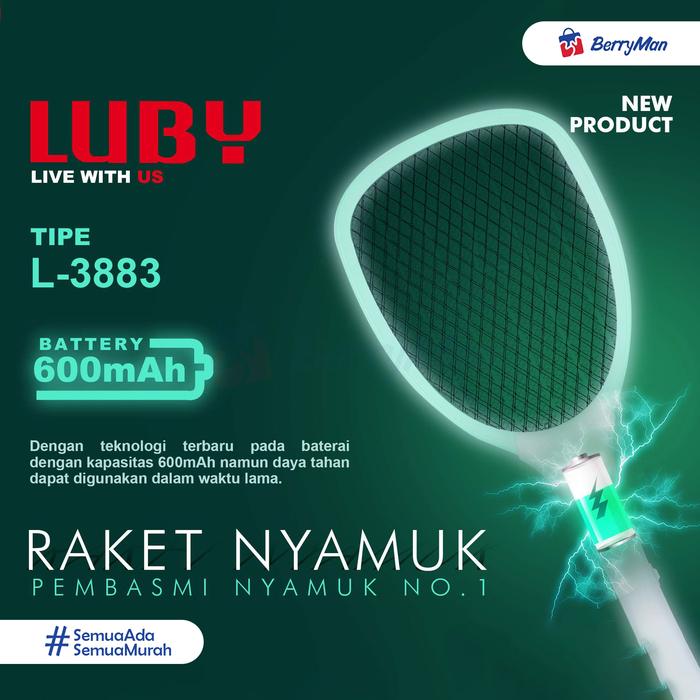 Luby Raket Nyamuk Elektrik L-3885 Rechargeable Lampu Led Indikator & Jaring 3 Lapis Anti Nyamuk Efektif Awet - L-3882