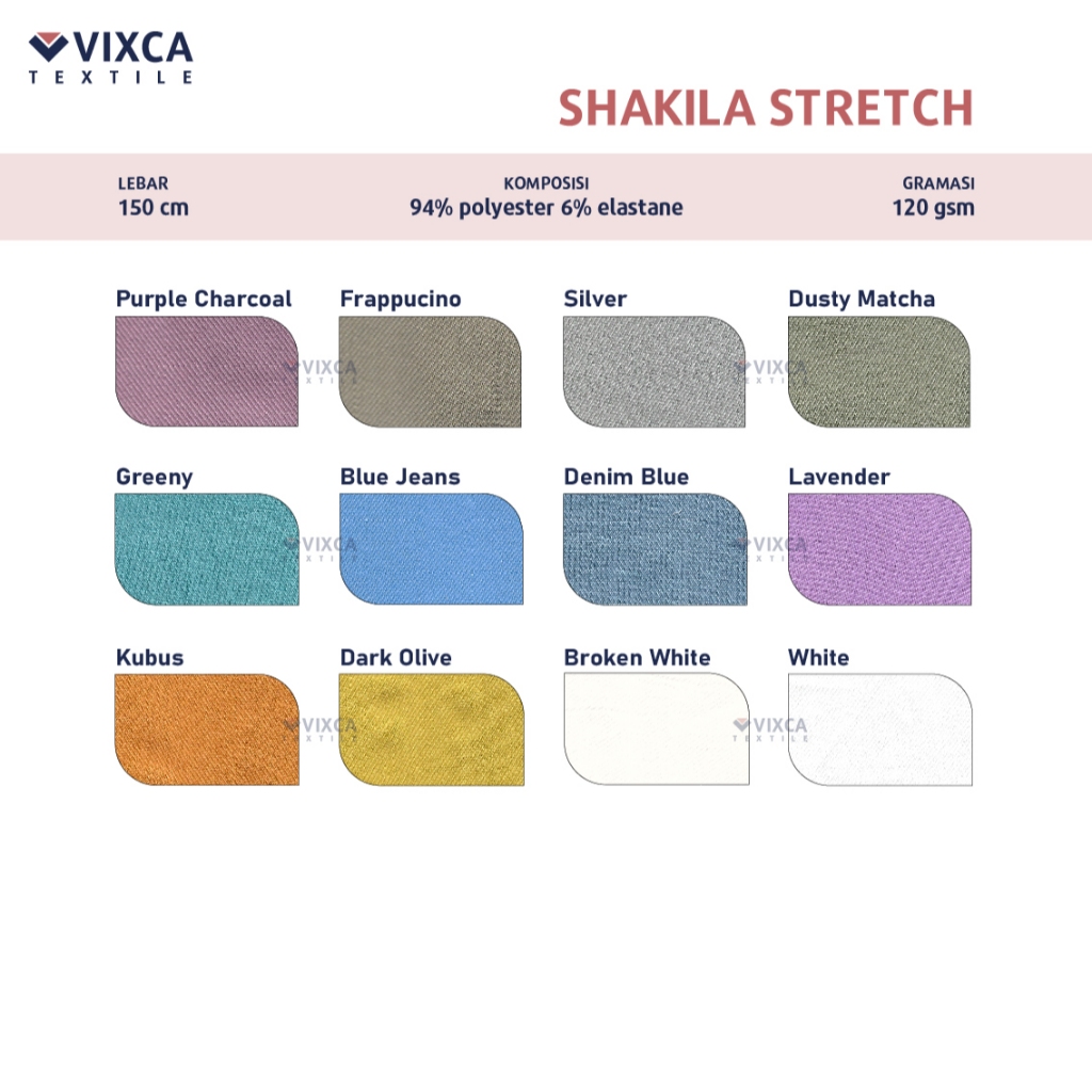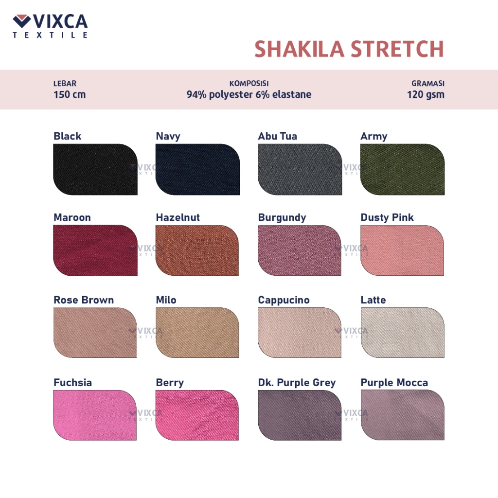 PER 0,5 M Kain Shakila Stretch Lebar 150 cm Samira Syakila Sakila Twill los losan ECER 1/2 METER METERAN 50 CM CENTIMETER