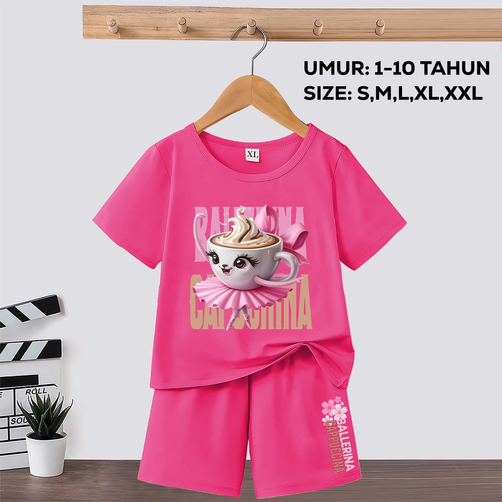 Baju Ballerina Cappuccina Anak Perempuan Umur 1-10 Tahun Lengan Pendek Set Anak Perempuan Anomali