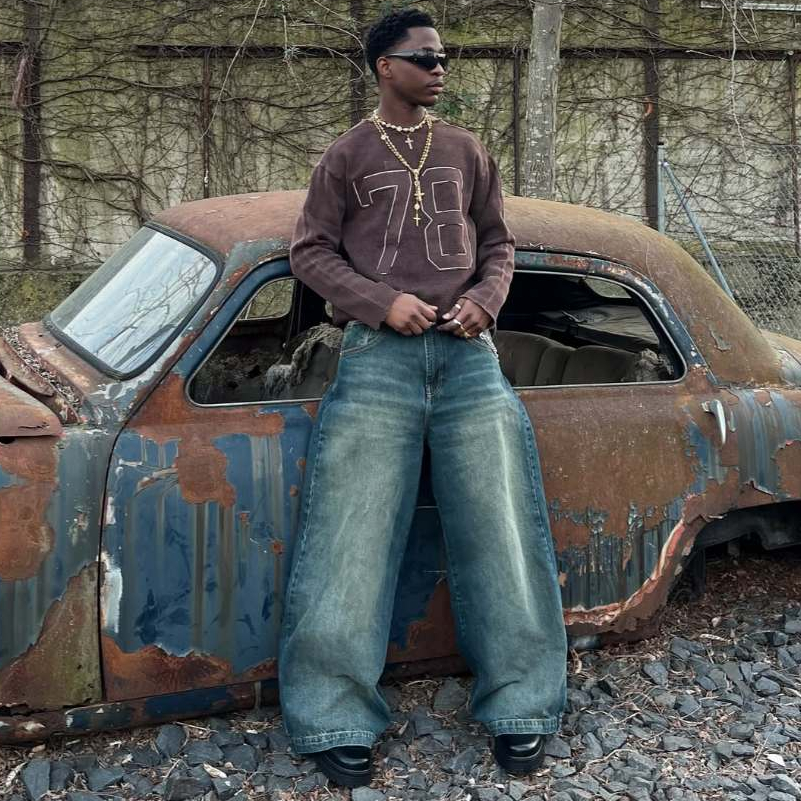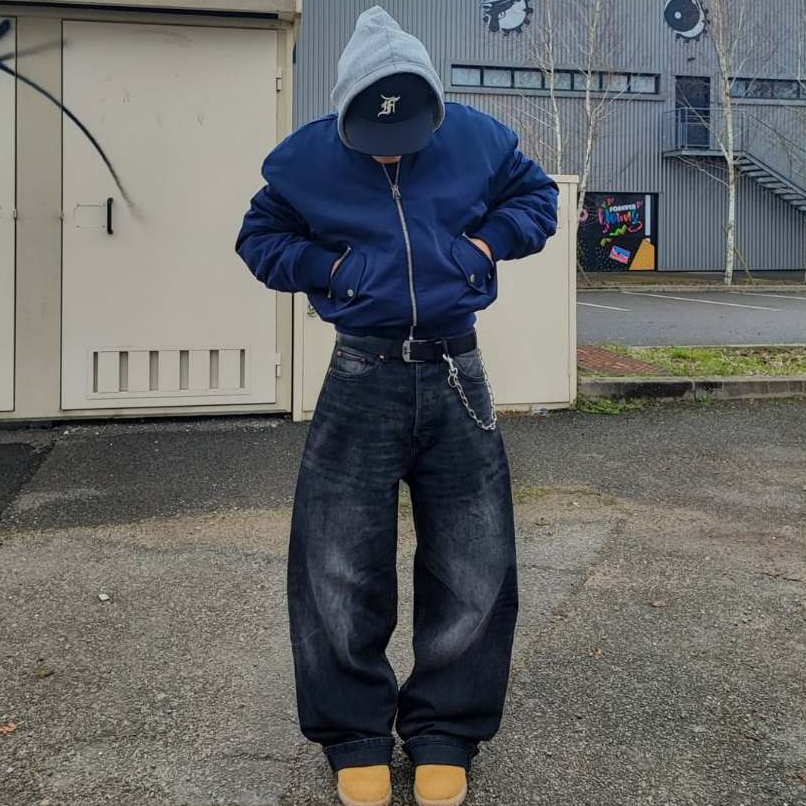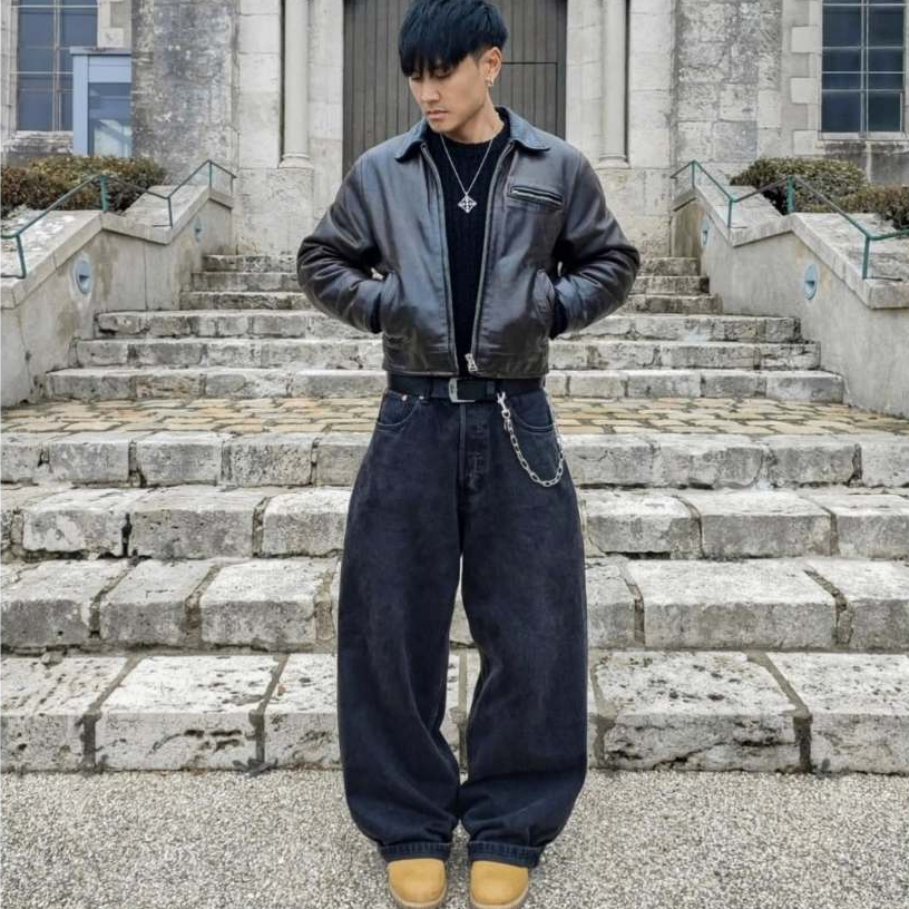 Celana Jeans Wide Leg Wisker Lebar Gombrong Skena Black Wisker pria loose fit jumbo big Bahan Denim