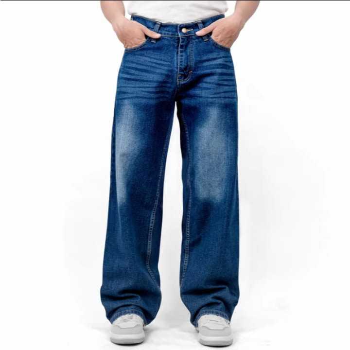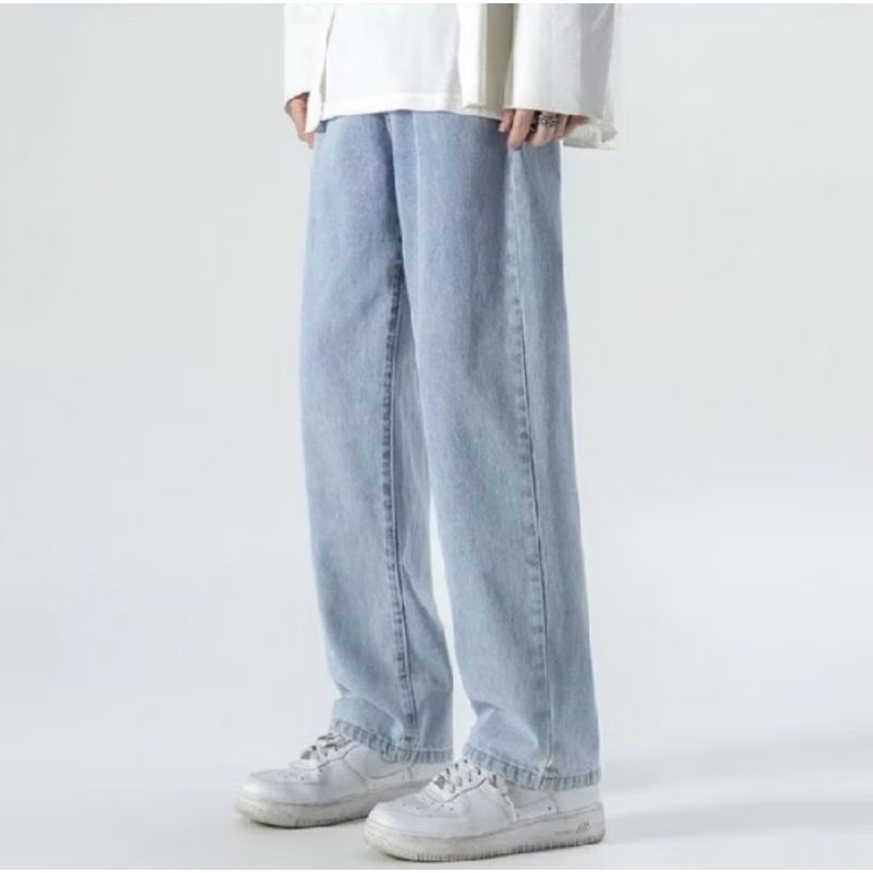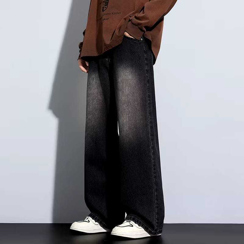 Celana Jeans Pria Panjang Snow Black - Celana Jeans Korea Style Original Loose Straight-Celana Jeans