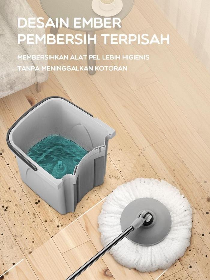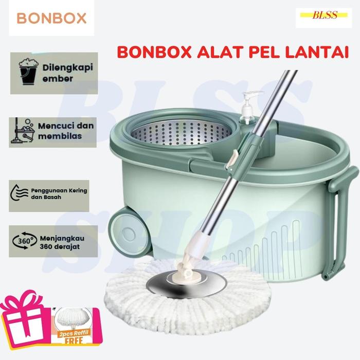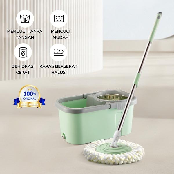 Alat Pel Pelan Pembesih Lantai Bonbox Microfiber Spin Mop Otomatis - Hijau