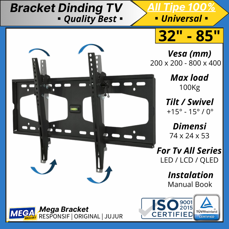 Brecket Braket Bracket Tv 80 75 70 65 60 55 50 43 32 Inch Dinding Tilt Samsung Sharp Sony LG Universal Semua Merk TV Cocok