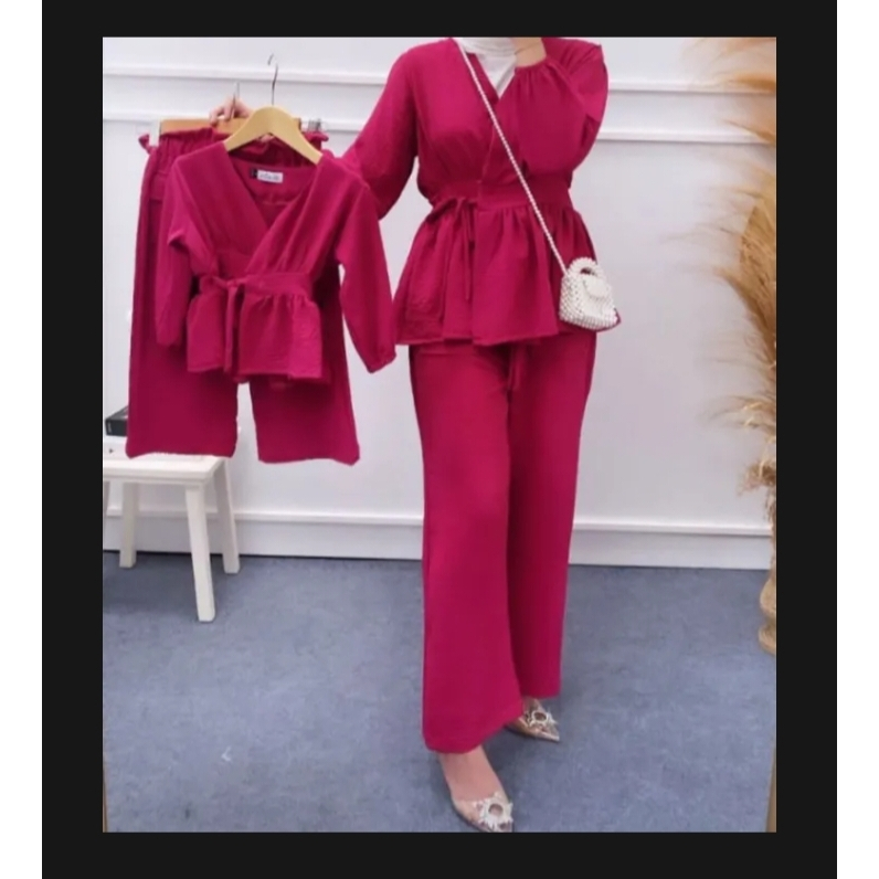 Baju setelan couple wanita ibu dan anak bahan cringkle airflow terbaru