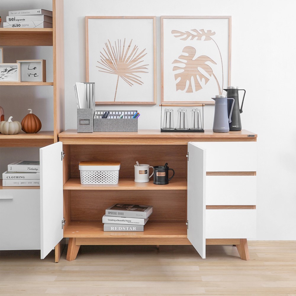 Informa Preston Kabinet 2 Pintu Dengan 3 L - Putih/Oak Lemari Kabinet Serbaguna Cabinet Penyimpanan Indoor Furniture Rumah Kontainer Barang Mainan Keranjang Baju Organizer L Box Serbaguna