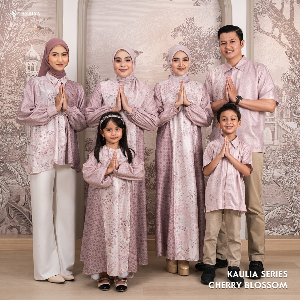 TAZBIYA - Sarimbit Motif Keluarga Kaulia (Gamis Sarimbit Lebaran 2026, Baju Sarimbit Keluarga, Tunik Blouse Sarimbit Idul Fitri)