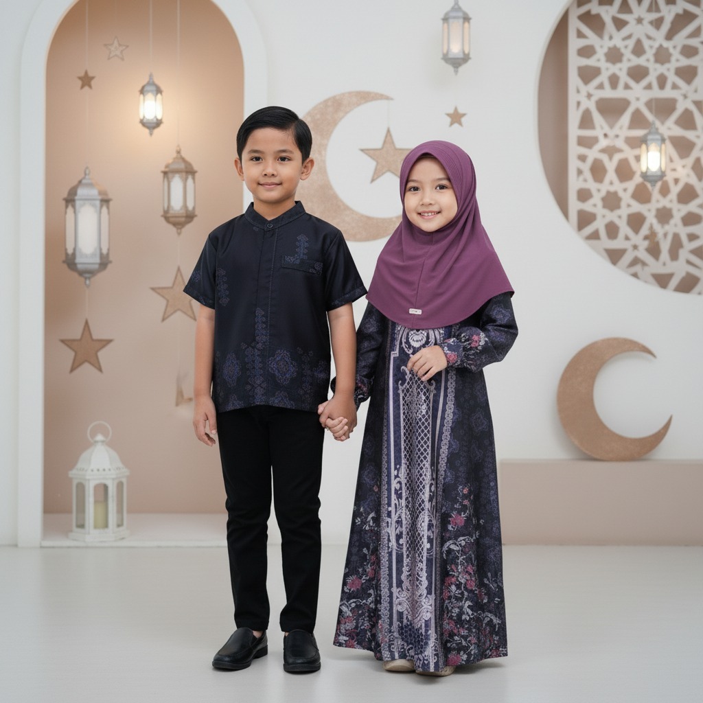 KEISHA_RHEVA Haliza Sarimbit Couple Keluarga Silk Motif / Fashion Gamis & Koko Muslim Terbaru Edisi Lebaran 2026