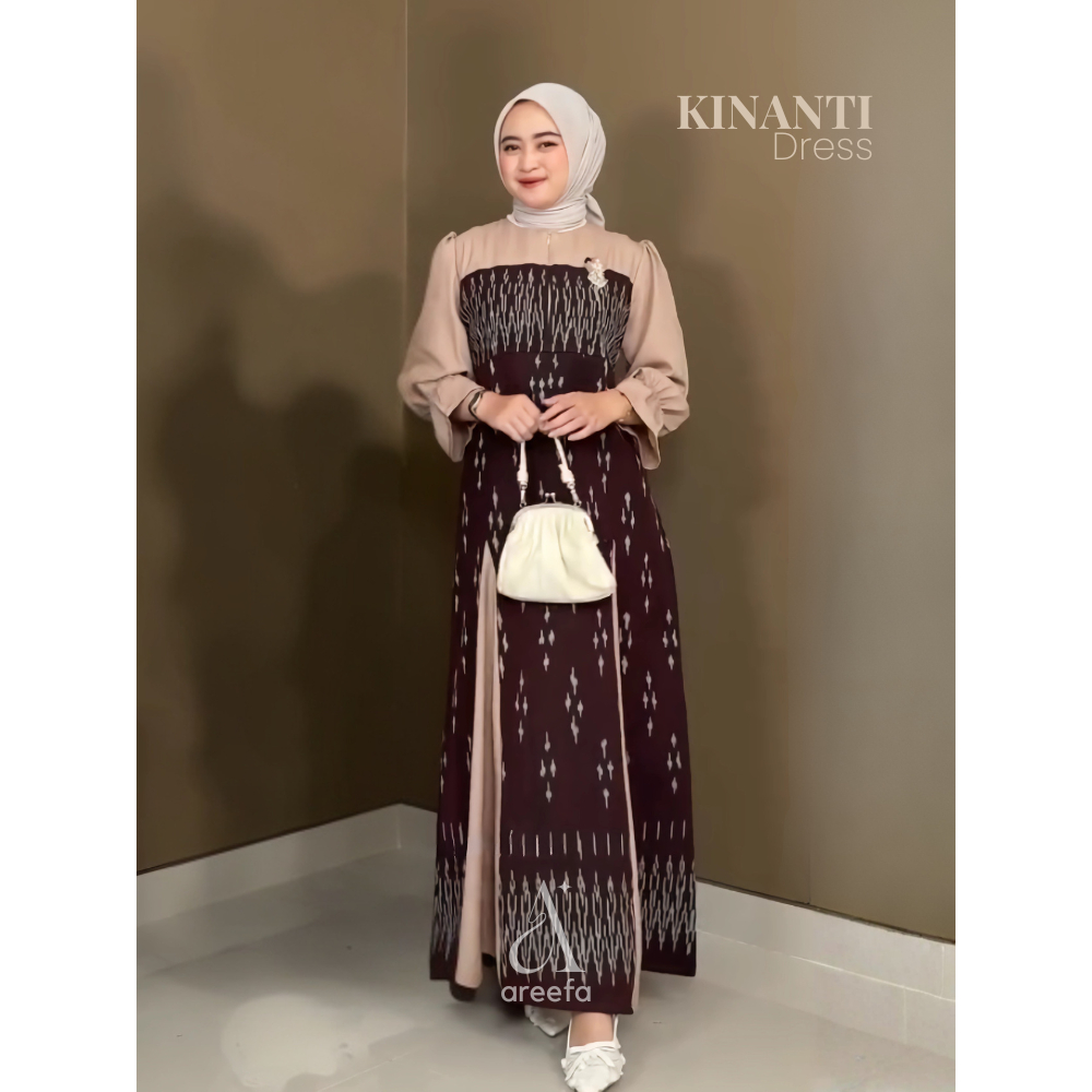 Areefa - KINANTI Gamis Dress Tenun Etnik Kombinasi Katun Premium Wanita Remaja Mahogany Pesta Mewah