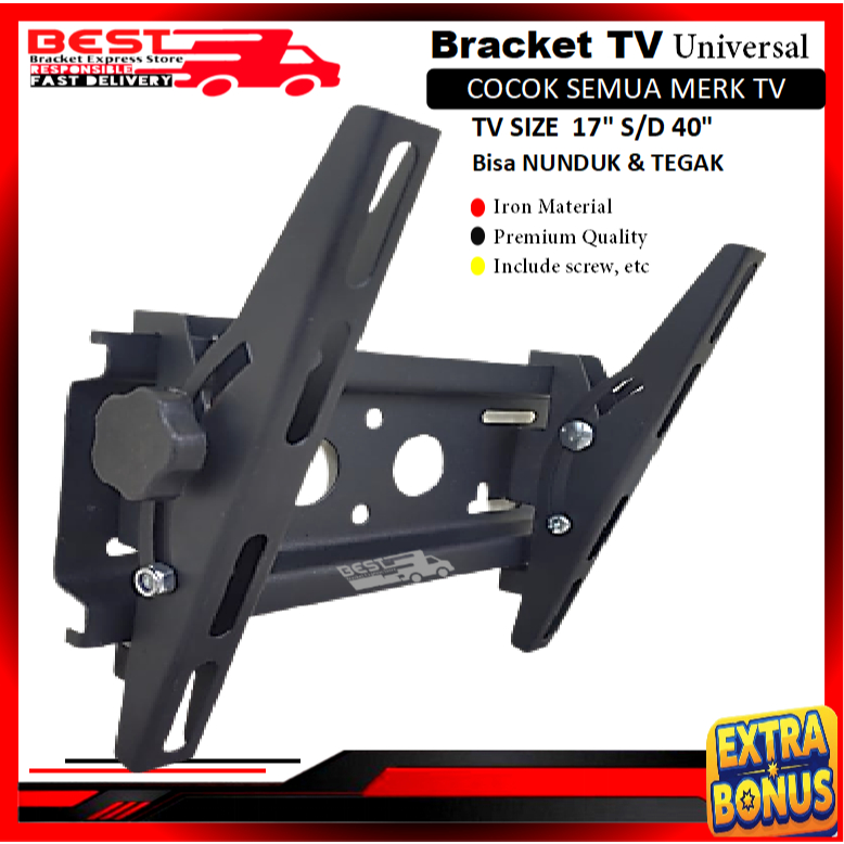 Bracket TV LED LCD 14" s/d 43" Universal 43 40 32 24 21 17 14 inchi nunduk FULL BESI bracket braket breket briket breaket brecket bricket