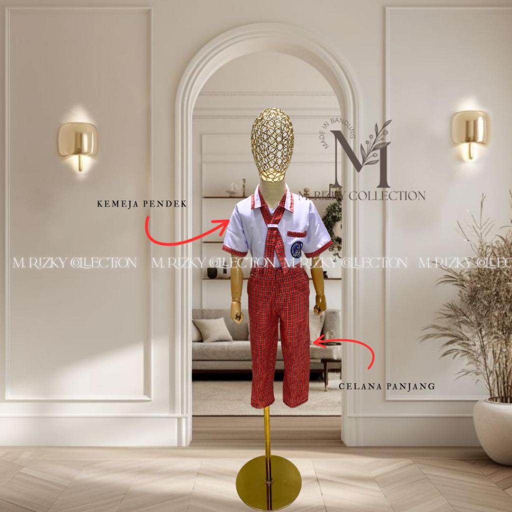 Set Seragam Kotak-Kotak Merah TK/Paud Nasional Laki-Laki dan Perempuan Panjang/Pendek