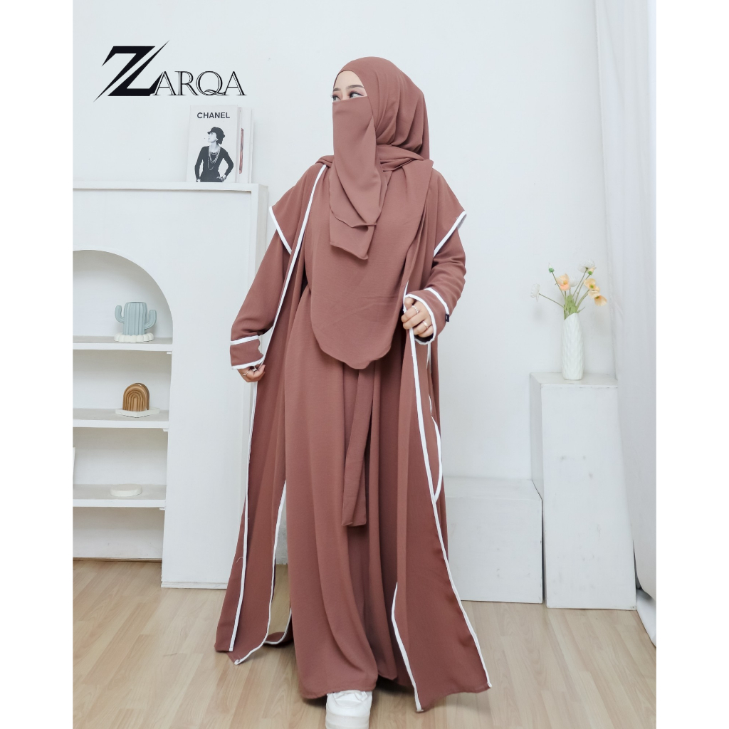 Maura Abaya Set 2in1 Basic Turkey Wanita Bahan Airflow Dress + Outer Terpisah