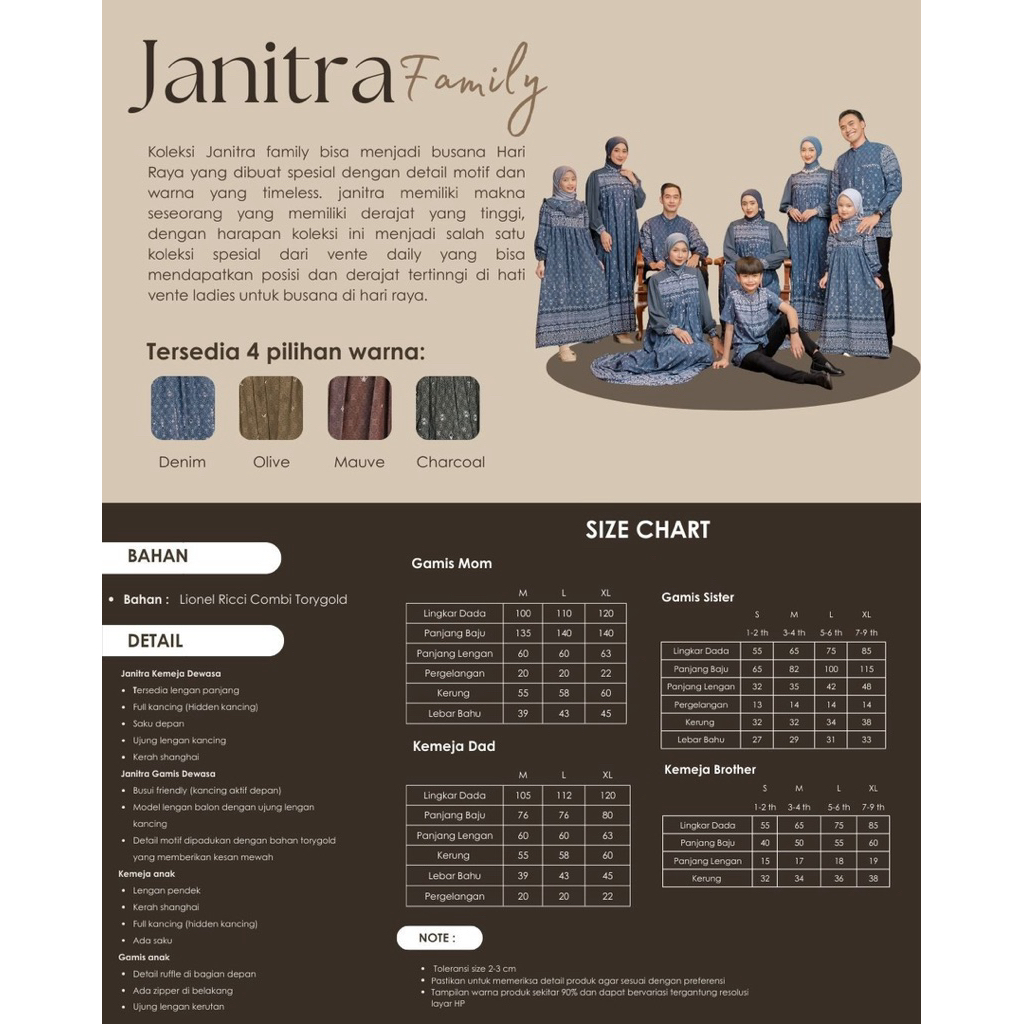 Janitra Couple Family Set Lebaran 2026 Sarimbit Keluarga Gamis Kemeja Ayah Ibu Anak Edition Lionel Ricci Combi Torygold