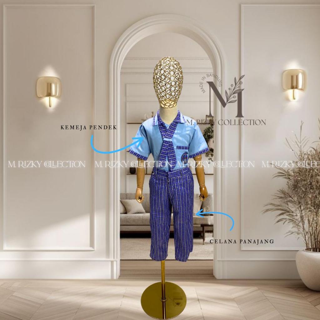 Set Seragam Kotak-Kotak Biru TK/PAUD Nasional Laki-Laki dan Perempuan Panjang/Pendek