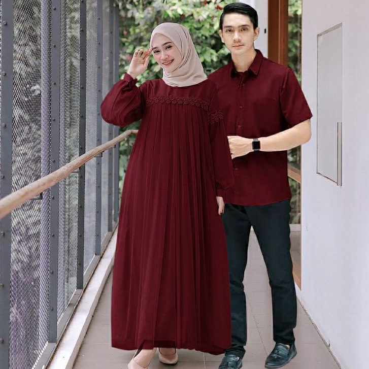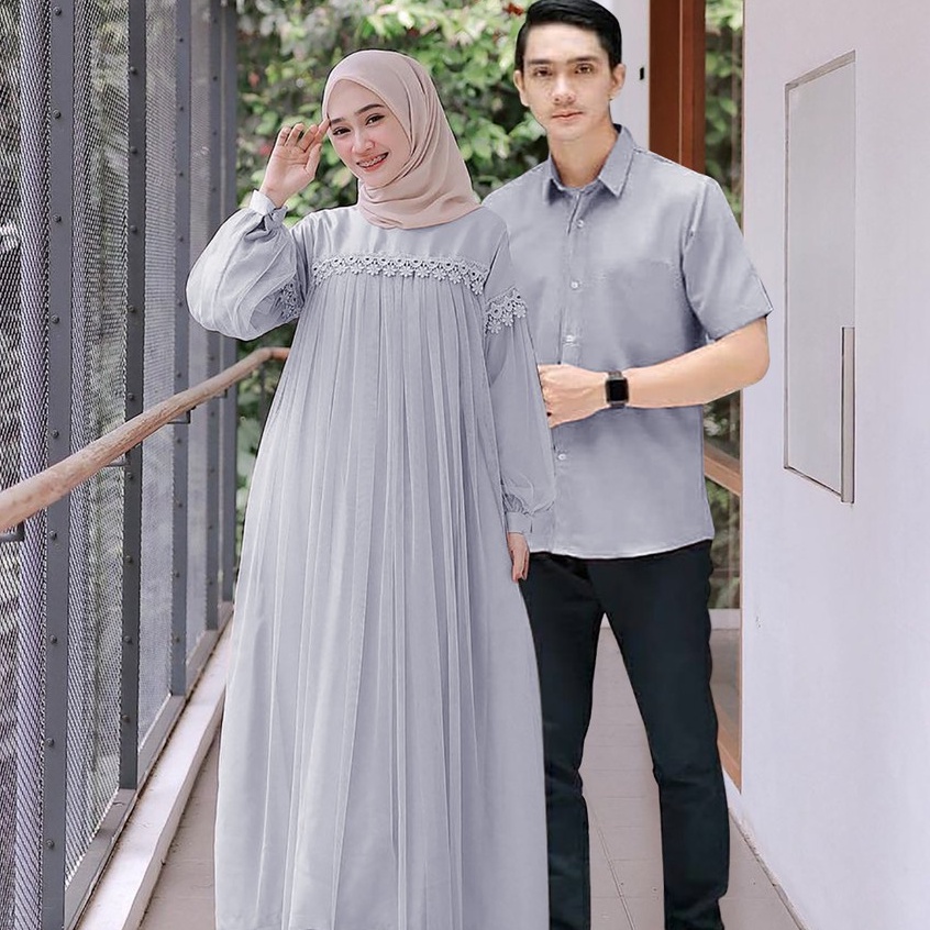 PROMO TERMURAH - Nuraini Couple Baju Pasangan Kemeja Gamis Tutu Tile Outfit Muslim Pesta Kondangan ZOYYA CP