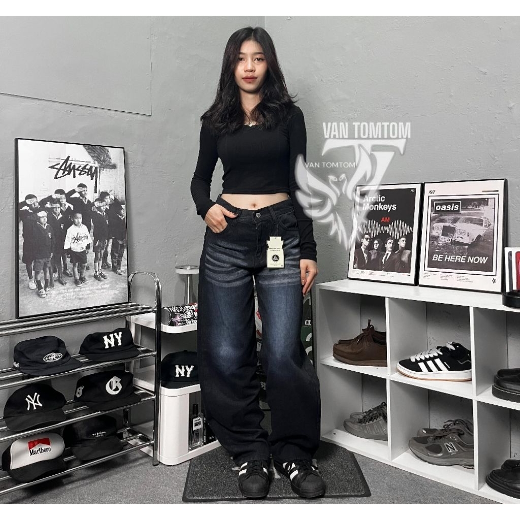 Celana Panjang Denim Gombrong Drak Wisker Skena Unisex Pria Wanita Termurah