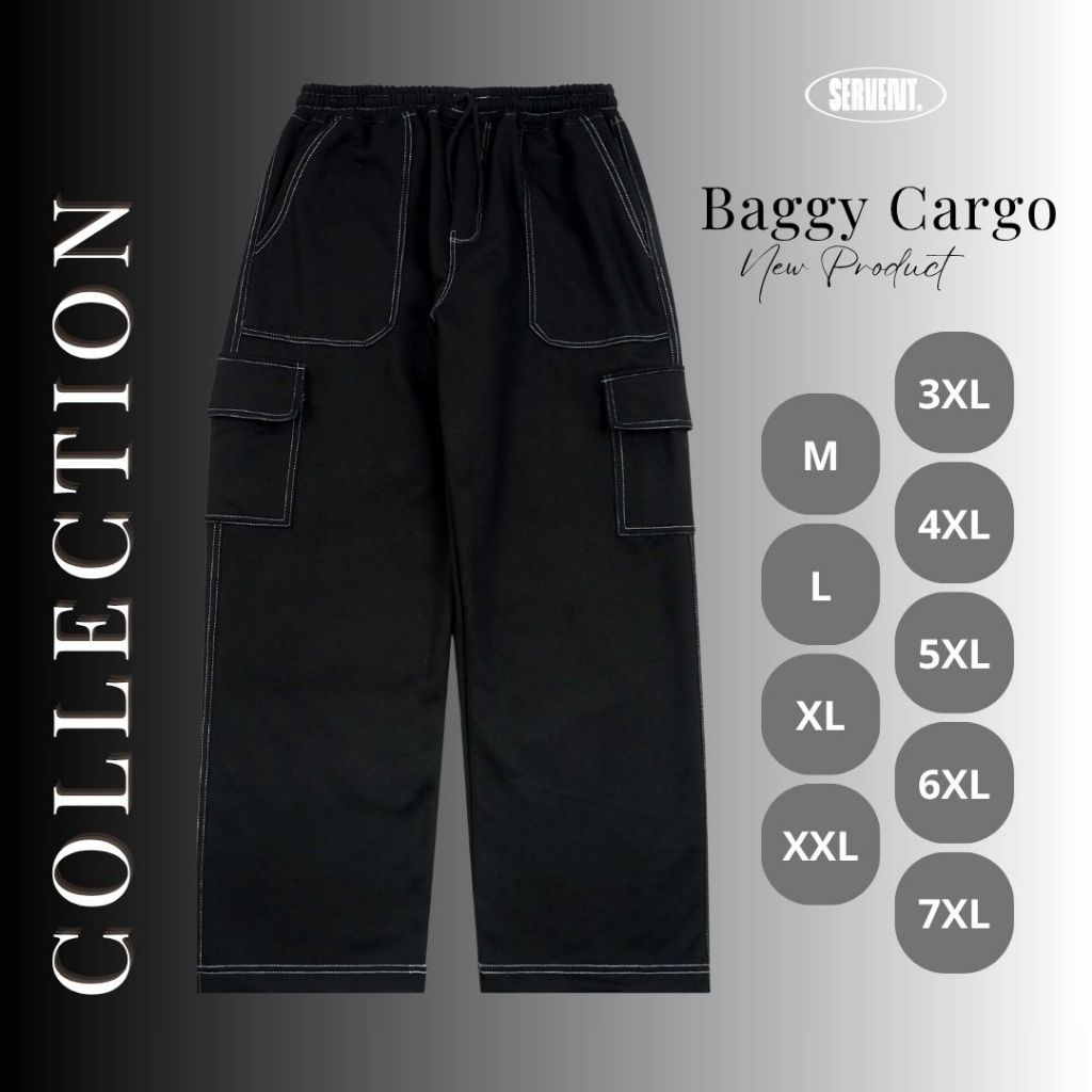 SERVENT - JUMBO Baggy Cargo Celana Panjang Original Terbaru Distro Hitam Aplikasi