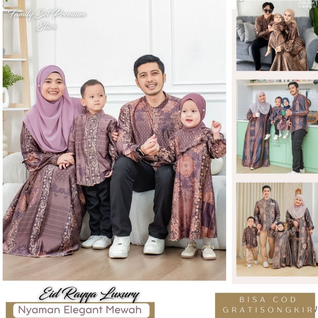 Baju couple keluarga ayah ibu anak Sarimbit keluarga 2026 lebaran premium motif etnic / Gamis kondangan simple elegan |Zalira Kids - Eliza